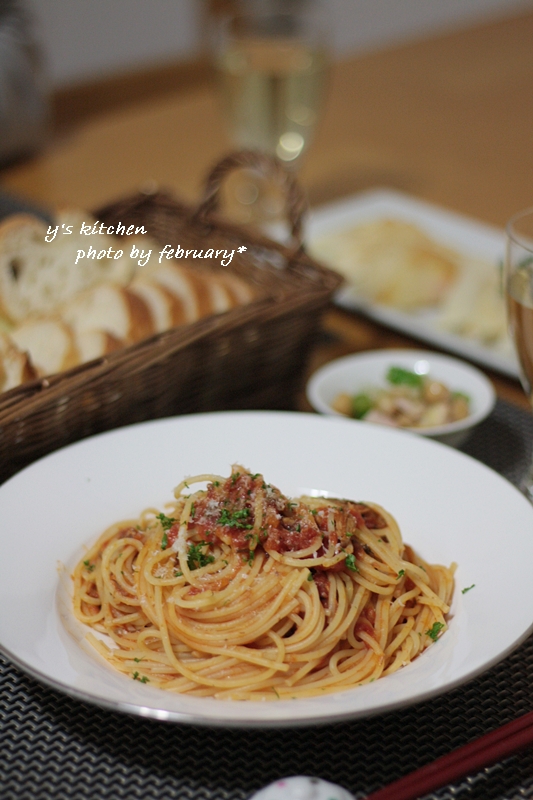 今回はサバの缶詰とトマトの缶詰でソースを作りました。
