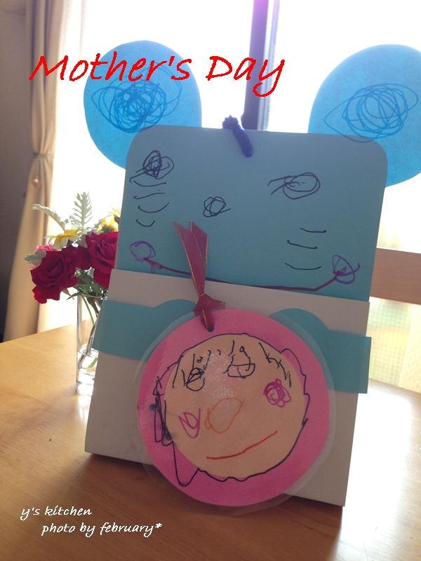 母の日の前に、幼稚園でお母さんのお顔を描いたそうです。