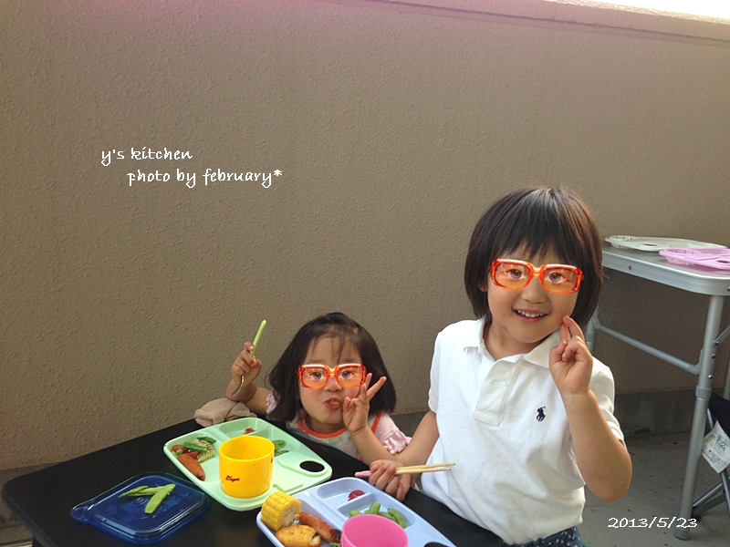 で、この日は別のお友達のおうちで ベランダ焼き鳥パーティー。