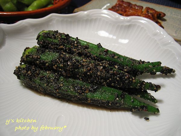 オクラ ・・・ 10本 黒ゴマ ・・・ 大さじ2