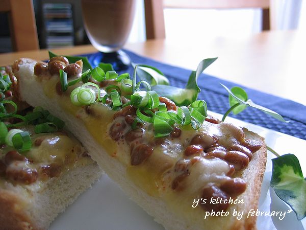 随分前にテレビでやっていたのを見て、それからは大のお気に入り。 納豆チーズトーストです。