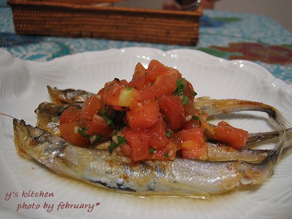 この日は、イタリア~ン な気分だったので、 ししゃものカリカリ焼き、トマトバジリコドレッシング