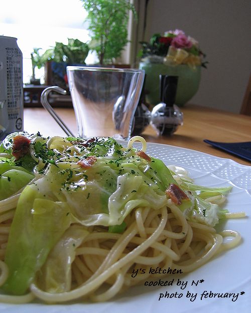 GWのお休みの日、 feb夫 が春キャベツとアンチョビのパスタを作ってくれました。