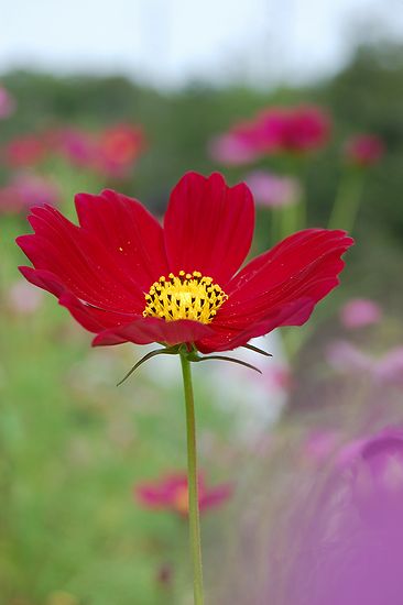 手前のピンクのコスモスをぼかしつつ、撮ったもの。