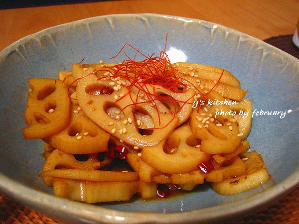 1. れんこんは皮をむいて、7mmくらいの厚さに切って、半月切りにし、酢水にさらす