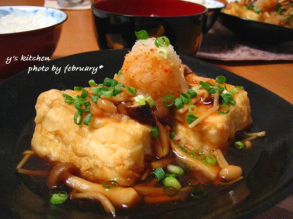 揚げ出し豆腐を作りました。きのこ餡は、 この時 と一緒です。