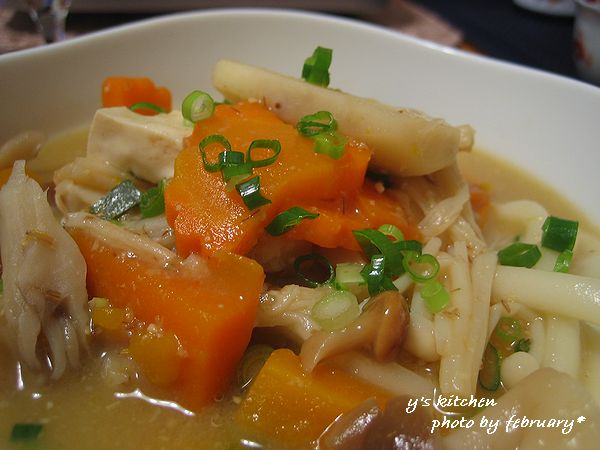 さて、今回入れた具材は、 かぼちゃ、にんじん、里芋、えのき、舞茸、しめじ、