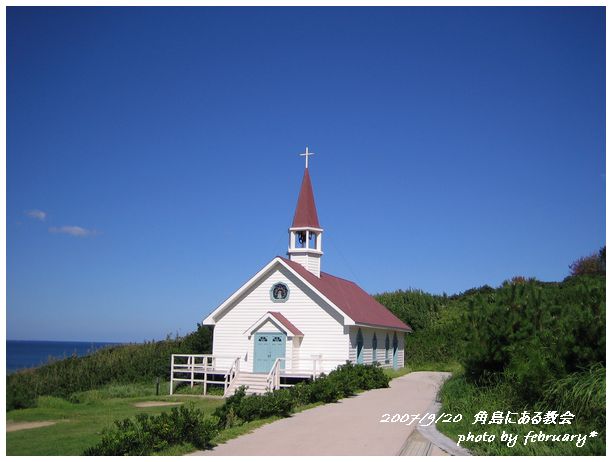 昨年、角島を舞台にした映画 「四日間の奇蹟」 のセットのために立てられた 教会 。