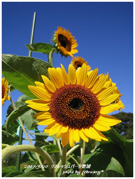 この青空と 向日葵 の黄色のコントラストがすばらしいなぁ〜って思って!