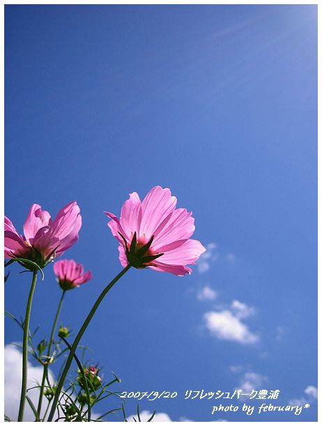 秋桜 は茎が細いので風の影響を受けやすく、この日は風が強かったので