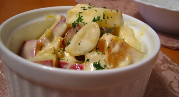 これにマヨネーズを合わせて和えただけ。 アーモンドスライスをいれています。
