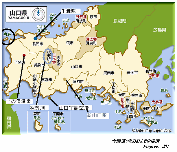 しかし、一日でこの移動距離すごいねぇ。このコースだとあの裏道は通らなかったのね(すっかり山口の交通事情に詳しくなったわ)