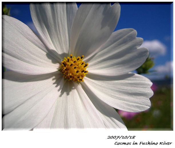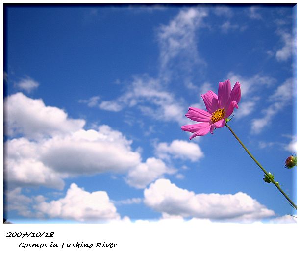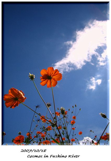 川とコスモスを眺めながら 「いったい、あたしゃ、こんなところで何をしているんだ?」 と