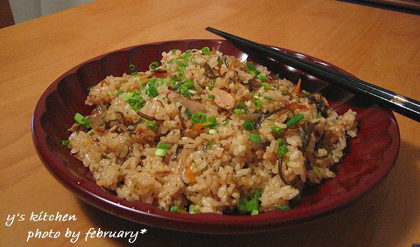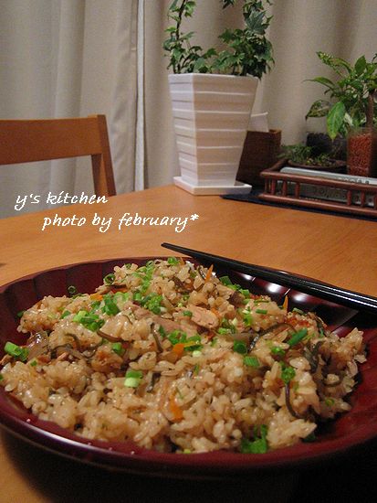 シーチキン と 塩昆布 を使って炊き込みご飯を作りました。