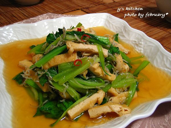 小松菜、青梗菜、水菜など、青菜があるときは作る一品です。