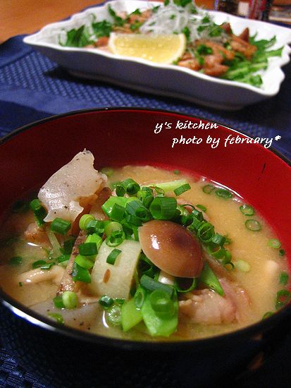にんじん、豚バラ肉(薄切り)、大根、こんにゃく、ごぼう、しめじ、里芋 を使ってます。