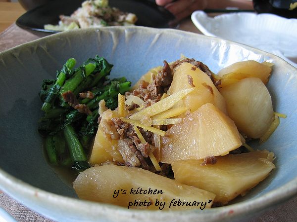 「大根と牛肉のしょうが煮」 を作ってみました。お料理本を参考に作ったものです。