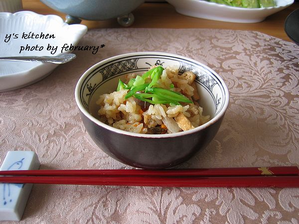炊き込む前に、具材は少し煮込んでから、入れてあります。