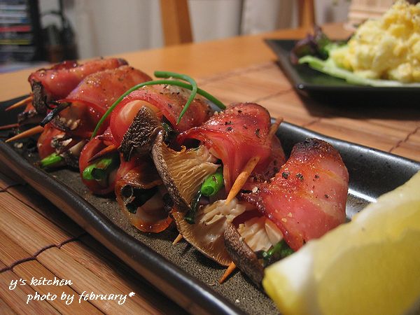 クルリンパッ とベーコンで巻いて、巻き終わりを楊枝で止めて