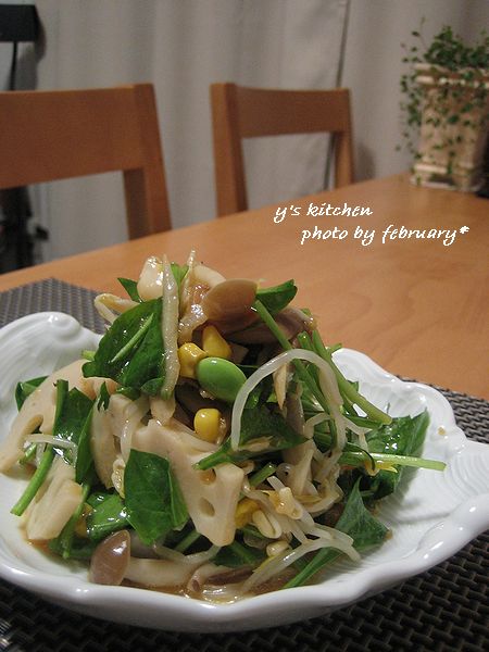 使った材料は、サラダほうれん草、もやし、冷凍コーン、冷凍枝豆、