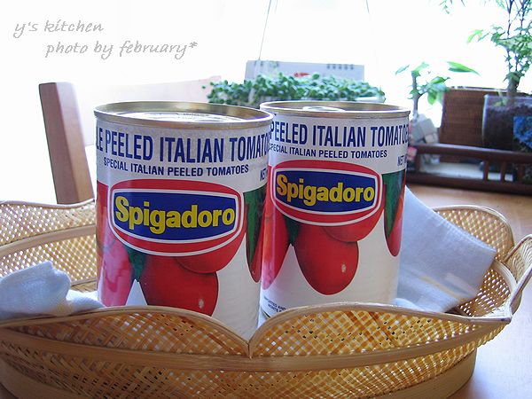 「Spigadoro」 のトマト缶は、東京だと簡単に手に入るのに、こちらではあまり見かけません。