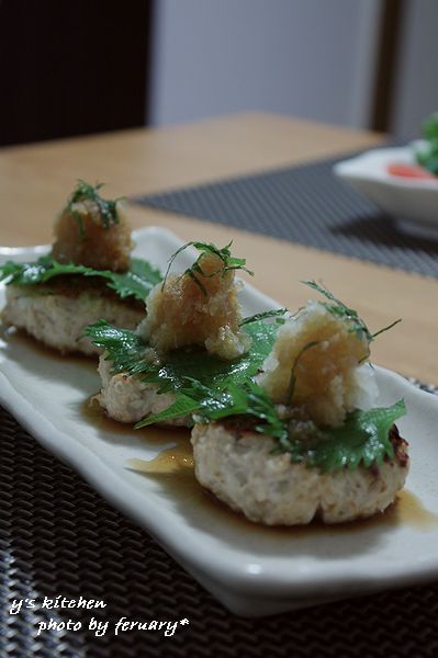 とか、色々考えて アッサリ の 和風ハンバーグを作りました。