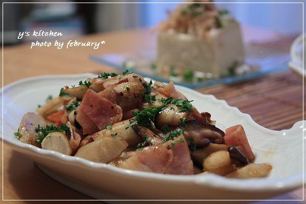 上 ↑ の 画像 の 奥 に写っているものは、 ごぼうとベーコンのオイスターソース炒め。