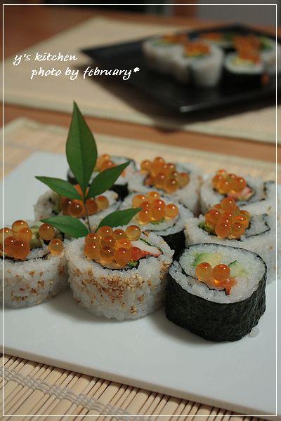 サーモンの上にイクラを乗せれば、親子太巻きっ!
