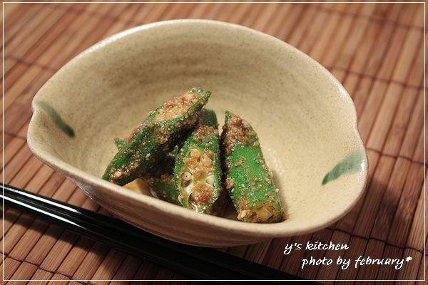 1本を半分に切って、すったゴマ、醤油、砂糖、お酒、少量の酢 で和えたものと