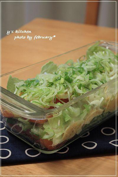 刻んだ長ネギを乗せて、もう一度、キャベツ、秋鮭、ソース、ネギの順に重ねて