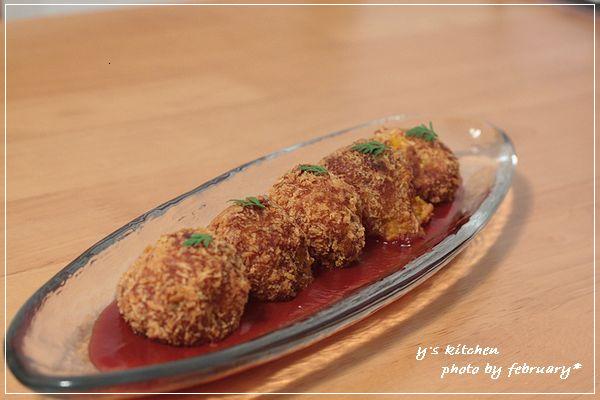 成型して、小麦粉 → 卵 → パン粉 を つけて揚げました。