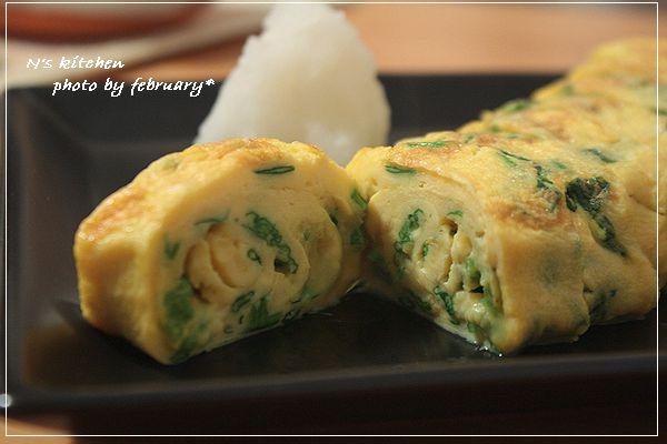 この二つをミックスして、 ほうれん草入りの卵焼き を (feb夫 が) 作りました。