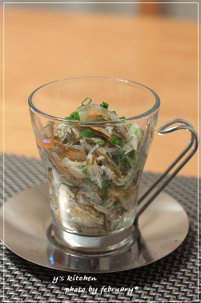 ねぎは小口切りにして、全部を 三杯酢 で混ぜ合わせるだけ。