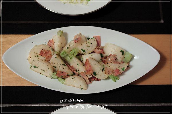 以前、 テレビ でやっていた 「カブとベーコンの温かいサラダ」。