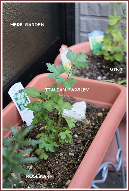 今、ベランダに、ローズマリー、アップルミント、タイム、パセリ、キャラウェイ