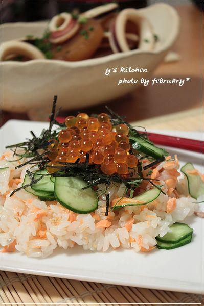 今回は、いくら、鮭、きざみ海苔、大葉、きゅうり、を入れてみました。