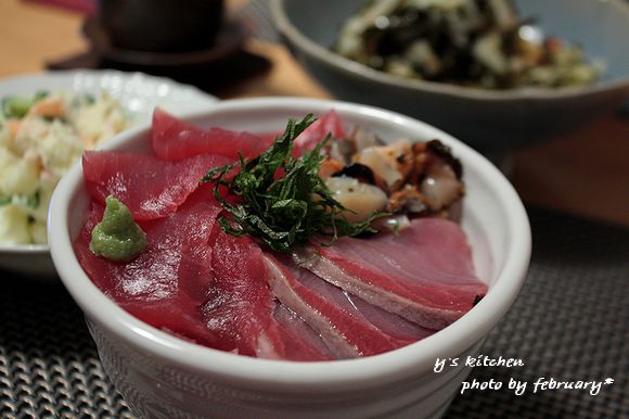 新鮮マグロ、ぶり、サザエ!!!海鮮丼最高に美味しそうですね。