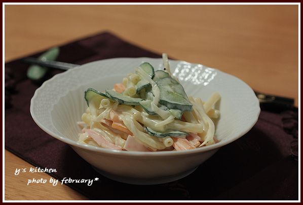 マカロニ は 茹でたら ザル に あけて、オリーブオイルを少々まわしかけておく