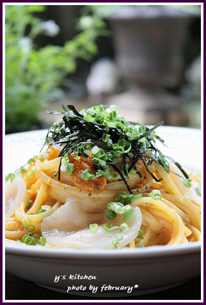 瓶詰めのウニ を 使って、クリームパスタ を 作りました。