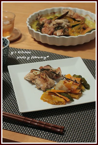 200度で予熱しておいたオーブンに耐熱皿ごと入れて、50分。