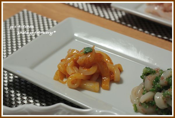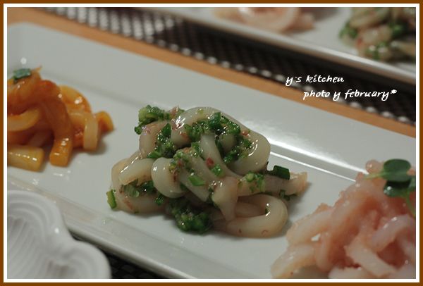 青森県産 の スルメイカ を 使って 三種類の和え物を作りました。