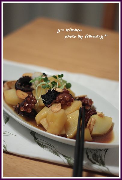 ココ を 参考 にさせていただいて タコ と じゃがいも の お料理です。
