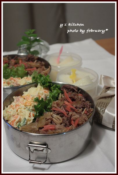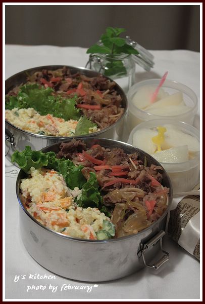 これは月曜日に作った 超手抜きっ!  の 牛丼弁当。