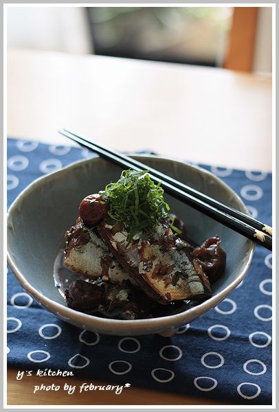 お弁当に入れてもいいなあー と 思って、梅干 と しょうが で 煮ました。