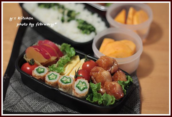 今回は、 照り焼き と、 竹輪のオクラ詰め が 美味しかったそうです (笑)