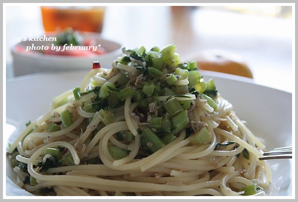 和風なパスタですが、にんにくと赤唐辛子をオリーブオイルで炒めて香りを出してから