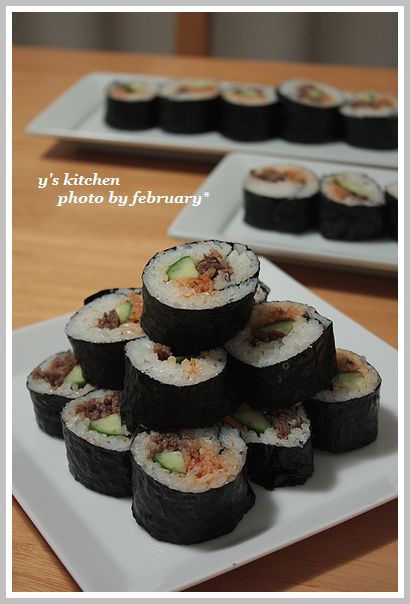 牛肉は、 コチュジャン を 使って、甘辛に仕上げて、あとは きゅうり と キムチ を