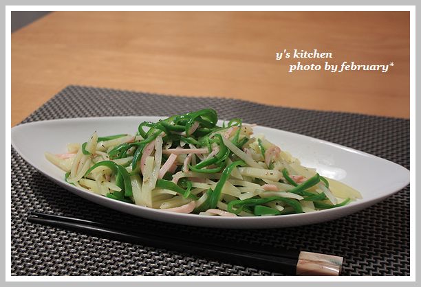 ↑ は じゃがいも、ピーマン、ハム を 千切りにして