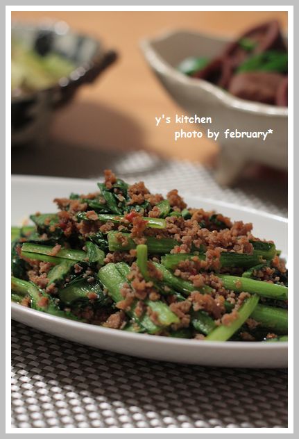 まぁ、それはさておき、数日前に作った 小松菜とひき肉のピリ辛炒め。