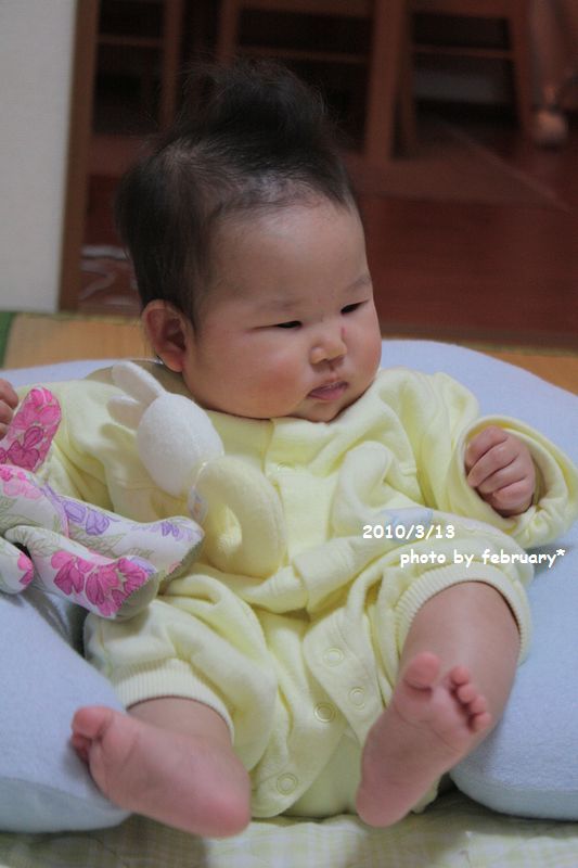 それもそのはず。6〜7ヶ月頃に少しだけ自力で座れるようになるらしい。